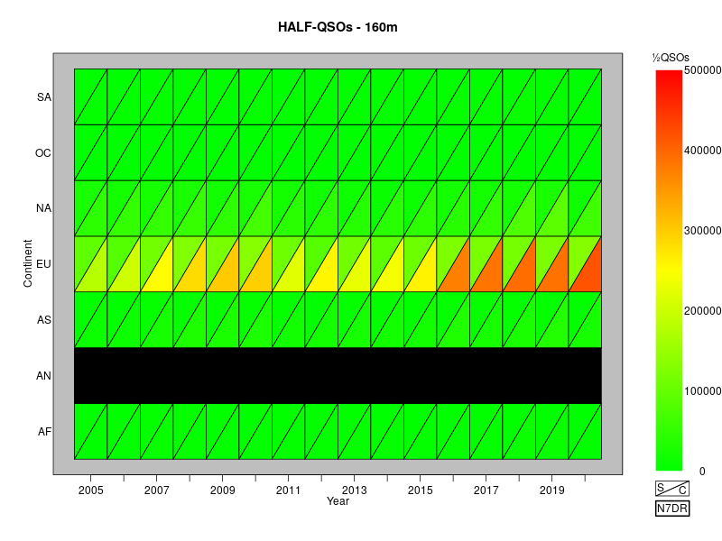 A huge number of analyses can be performed with the various public CQ WW logs (cq-ww-2005--2020-augmented.xz; see here for details of the augmented format) for the period from 2005 to 2020.